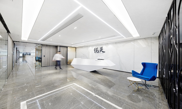 整体空间延续CBD建筑的商务气质与精神,采用现代风格糅合新中式元素,打造全新办公体验。1500平米的空间围绕接待、会议、办公区、休闲区、咖吧五个部分组成。是为了公司组织架构发展而设计的不同空间区域,从而满足锐天未来发展对空间的诉求。