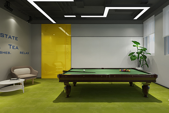 同时可以配置接待前台在背景墙的前端,让企业文化与接待融为一体,让进入公司的员工或客人一目了然。这里的背景墙可以适当应运与周围场景不一样的颜色,使其较为醒目;或是背景墙上的logo或企业名称字样可使用发光材质,以达到醒目的效果。