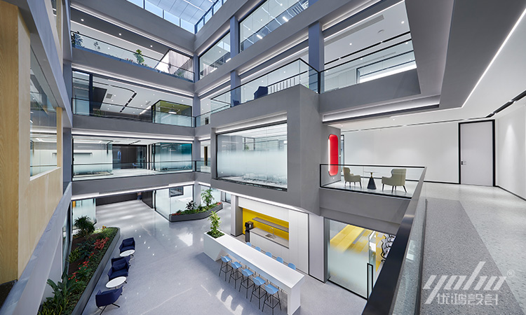 通往各个区域的过道,作为空间之间的连接体,在场域中承载着过渡与起承的作用。有序排列的线条在空中轻盈起舞,增强空间的秩序感,利落的设计语言表达,让空间更加简洁明亮。