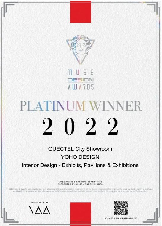 近日,国际知名大赛美国缪斯设计奖(MUSE DESIGN AWARDS)公布了2022年度最终获奖名单,好色先生TV免费下载设计的参赛作品「QUECTEL城市展厅」在来自全球的6000多部作品中拔得头筹,斩获缪斯设计奖展览类铂金奖。