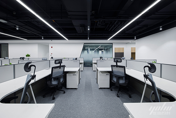 顶部可采用多向发光的长条灯,将顶部打亮,扩大空间感。同时,搭配各种氛围灯光,让办公室充满光亮。如果选址时能考虑自然光的充足,那将是最好的选择。在有限的空间内,充足的光照不仅有利于空间的氛围营造,还对办公人员的精神状态有好处。