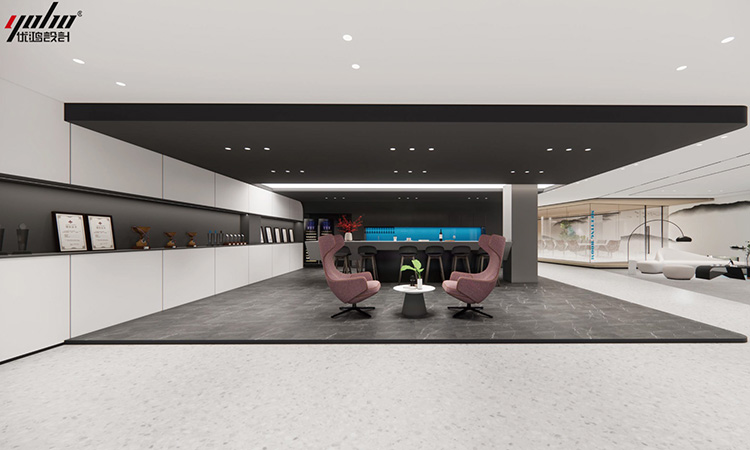 此次展厅设计沿用办公楼现代、典雅的格调,继续以「开放、简约」的手法雕琢空间形态。除了产品展示区域外,还打造了会议区、接待区、总经理室以及高尔夫区,丰富了空间的多元性。